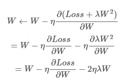 regularization term을 더한 것을 가중치를 업데이하는 식에 적용해보면 아래와 같다