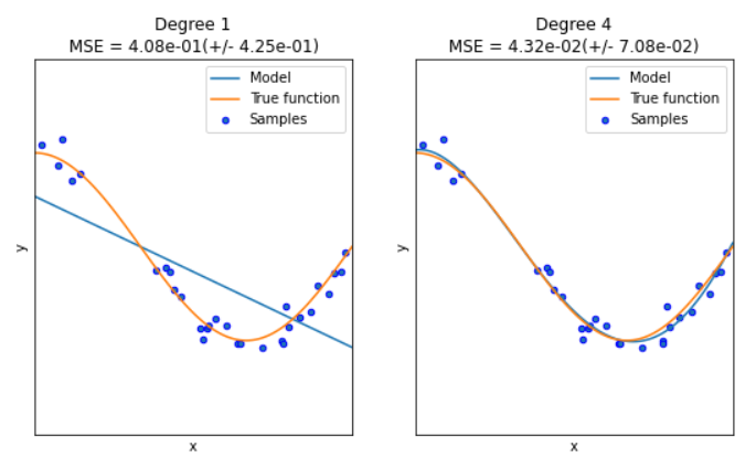좌: linear regression에서의 underfitting, 우: 분류 모델에서의 underfitting